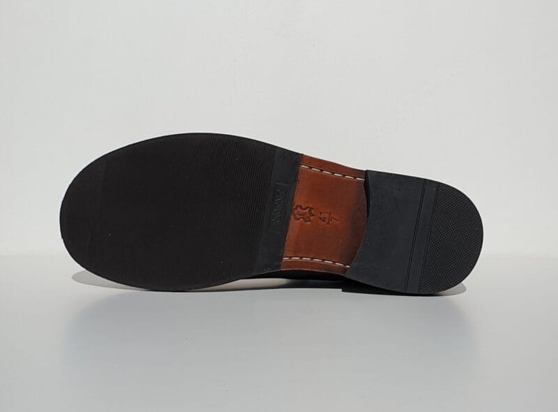 El interior de las botas está forrado por completo con suave piel de becerro. La construcción es de muy alta calidad: la parte superior de cuero y la plantilla están unidas por una costura completa. Una bota sin cordones cómoda y con un toque de nobleza.